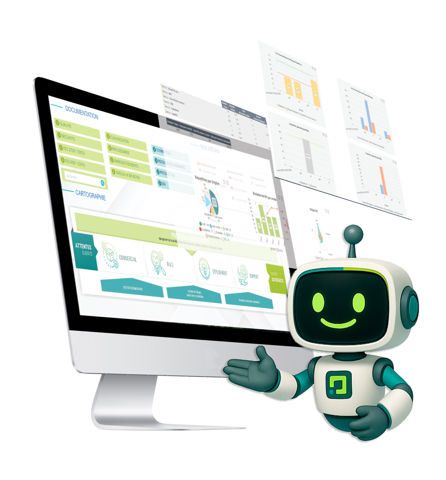 La personalización puede alimentarse de sus propios formularios o cuadros de mando con Qualios Manager.